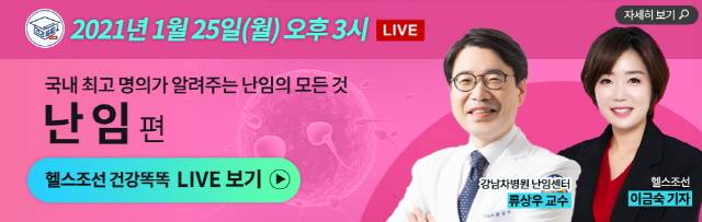 오늘 오후 3시 헬스조선 라이브, 강남차병원 류상우 교수 출연