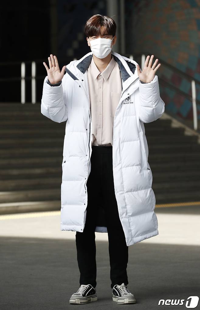 (서울=뉴스1) 권현진 기자 = 가수 노지훈이 25일 오전 서울 여의도 KBS에서 열린 '대한민국 라이브' 촬영을 마치고 인사를 하고 있다. 2021.1.25/뉴스1