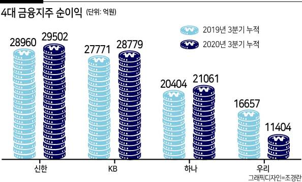 코로나19 국면에서 금융그룹의 실적이 개선됐다지만 각종 금융지원을 통해 대출총액이 늘어나면서 이자수익이 늘어난 듯 보인 측면이 크다.