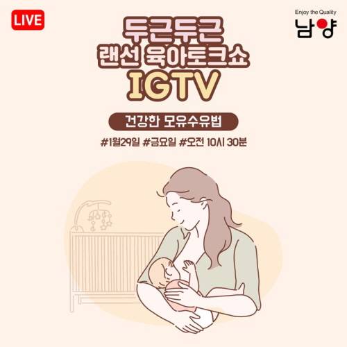 남양유업(회장 홍원식)이 오는 29일 인스타그램 IGTV 방송을 통해, 건강한 모유 수유법을 주제로 랜선 임신육아교실을 진행한다.