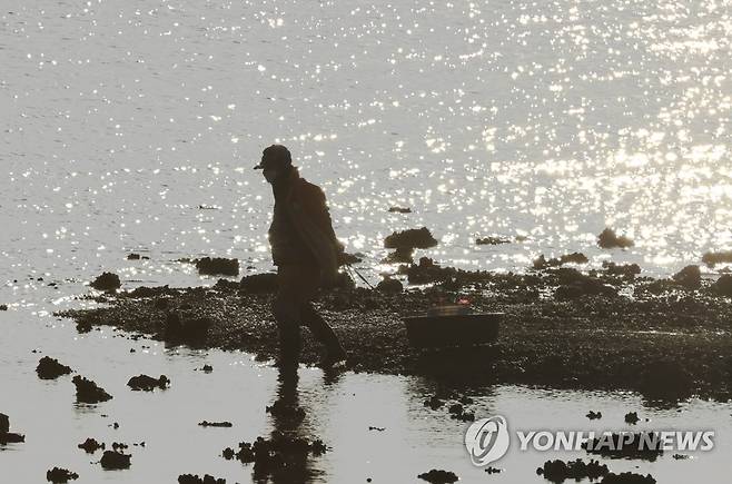 (강진=연합뉴스) 조근영 기자 = 봄처럼 포근한 날씨가 이어진 25일 전남 강진군 신전면 사초리 인근 청정해역 강진만(灣) 바닷가에서 이른 아침부터 자연산 석화(石花) 채취에 나선 어부들의 손놀림이 분주하다. 2021.1.25 [강진군 제공·재판매 및 DB 금지]