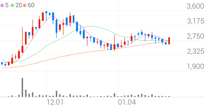 전일 대비 10.73% 상승한 2,940원에 거래되고 있다.