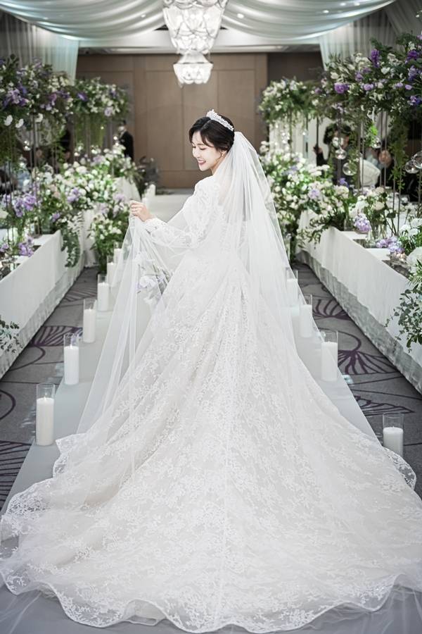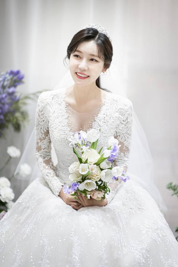 공개된 본식 화보엔 우아한 웨딩 드레스 자태를 뽐낸 이태영과 듬직한 신랑의 모습이 담겼다.