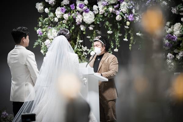 이태영의 결혼식은 주례 없이, 개그맨 오정태의 축사와 김경진의 사회, '개가수' 영기와 방송인 박슬기, 여성 MC 4인방의 축가로 진행됐다.
