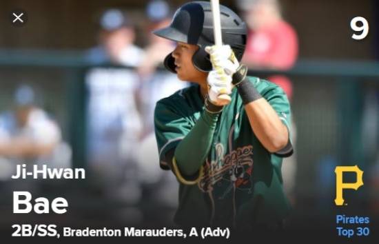 최근 포지션별 유망주 TOP 10을 소개 중인 MLB.COM은 25일(한국 시간) 2021년 2루수 유망주 전체 9위에 배지환의 이름을 올렸다.
