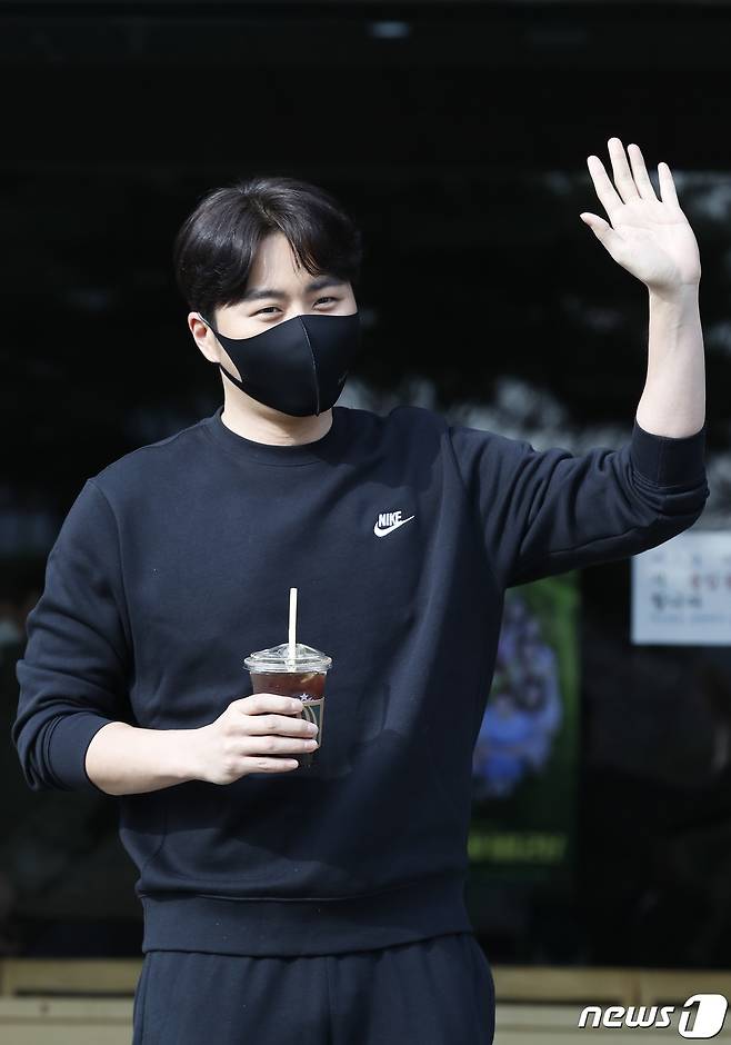 (서울=뉴스1) 권현진 기자 = 가수 이루가 25일 오전 서울 여의도 KBS에서 열린 촬영을 위해 들어서며 인사를 하고 있다. 2021.1.25/뉴스1