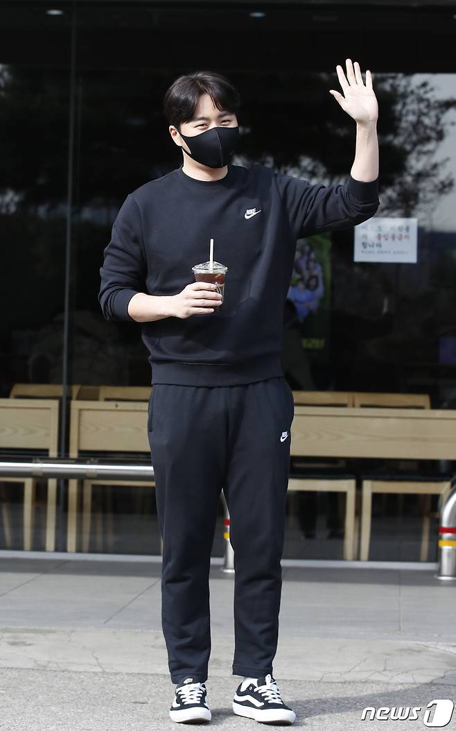 (서울=뉴스1) 권현진 기자 = 가수 이루가 25일 오전 서울 여의도 KBS에서 열린 촬영을 위해 들어서며 인사를 하고 있다. 2021.1.25/뉴스1
