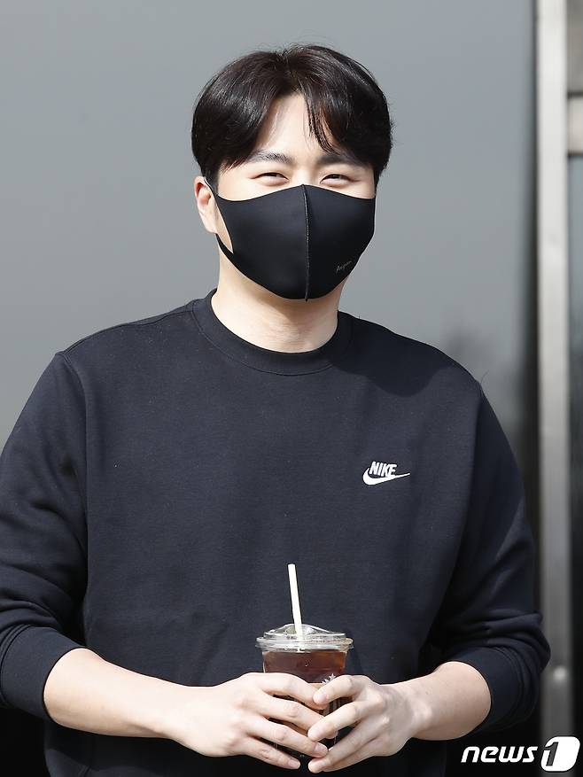(서울=뉴스1) 권현진 기자 = 가수 이루가 25일 오전 서울 여의도 KBS에서 열린 촬영을 위해 들어서며 인사를 하고 있다. 2021.1.25/뉴스1