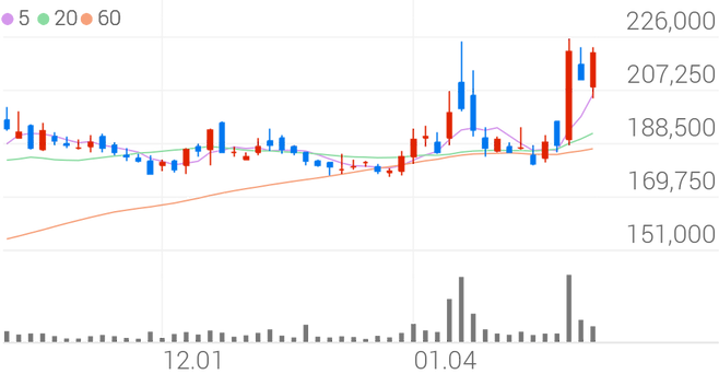 전일 대비 7.11% 상승한 226,000원에 거래되고 있다.