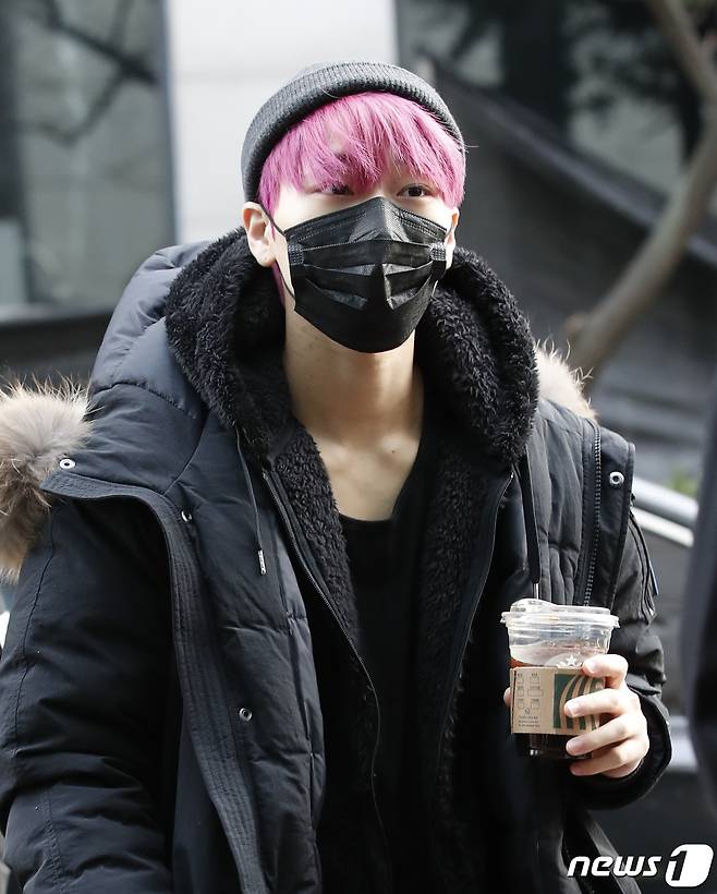 (서울=뉴스1) 권현진 기자 = 에이티즈(ATEEZ) 산이 25일 오전 서울 여의도 KBS에서 열린 '불후의 명곡' 촬영을 위해고 들어서고 있다. 2021.1.25/뉴스1