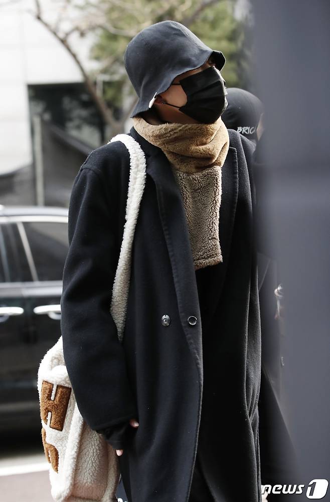 (서울=뉴스1) 권현진 기자 = 에이티즈(ATEEZ) 홍중이 25일 오전 서울 여의도 KBS에서 열린 '불후의 명곡' 촬영을 위해고 들어서고 있다. 2021.1.25/뉴스1