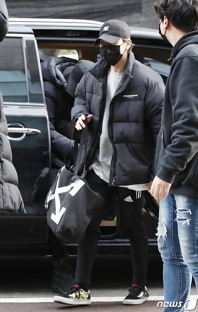 (서울=뉴스1) 권현진 기자 = 에이티즈(ATEEZ) 우영이 25일 오전 서울 여의도 KBS에서 열린 '불후의 명곡' 촬영을 위해고 들어서며 인사를 하고 있다. 2021.1.25/뉴스1