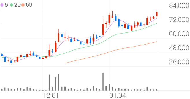 이오플로우가 52주 신고가를 경신했다. 전일 대비 6.52% 상승한 83,300원에 거래되고 있다.