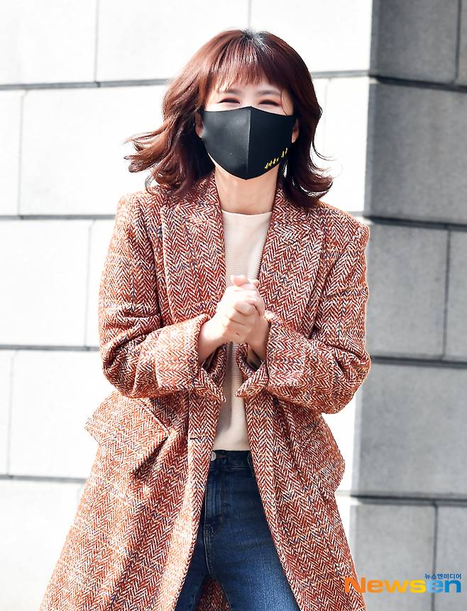 가수 풍금이 1월 25일 방송 프로그램 녹화를 위해 kbs방송국으로 들어서고 있다.