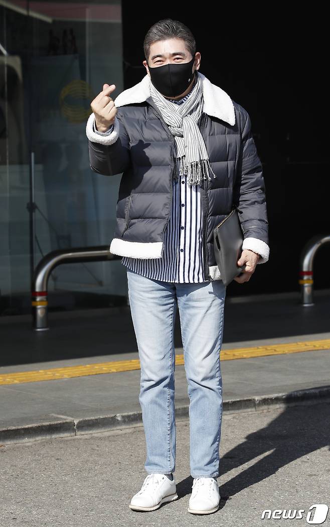 (서울=뉴스1) 권현진 기자 = 가수 편승엽이 25일 오후 서울 여의도 KBS 별관에서 열린 ‘가요무대’ 녹화를 위해 들어서며 인사를 하고 있다. 2021.1.25/뉴스1
