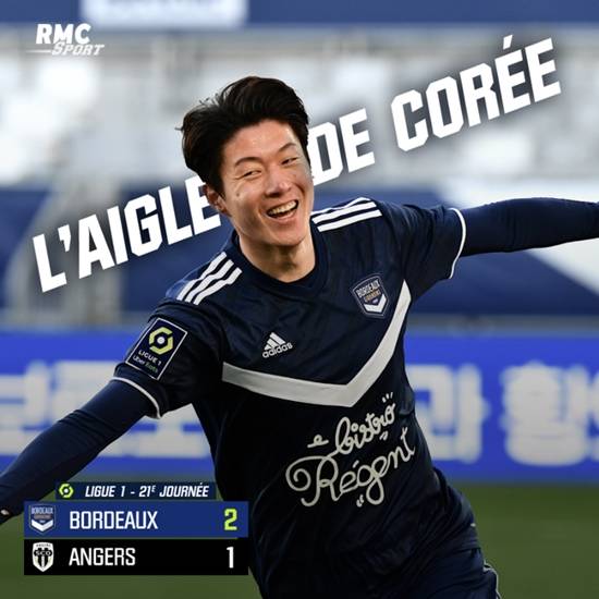 이날 프랑스 언론 RMC 스포츠는 황의조를 "대한민국의 독수리"라고 소개하며 보르도의 승리 소식을 전했다.