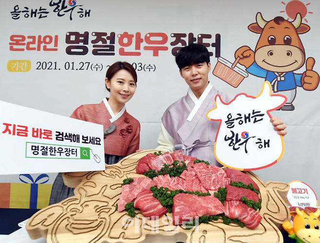 [이데일리 김태형 기자] 한우자조금관리위원회(위원장 민경천)는 오는 27일부터 2월 3일까지 .2021년 설맞이 온라인 명절한우장터'를 열고 등심, 안심, 채끝 등 구이류와 불고기, 양지, 사태 등 국거리 등 부위별 한우를 최대 40%까지 할인 판매한다.