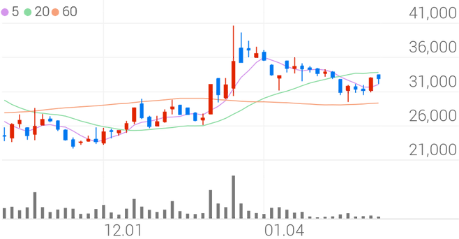 전일 대비 2.88% 상승한 33,950원에 거래되고 있다.