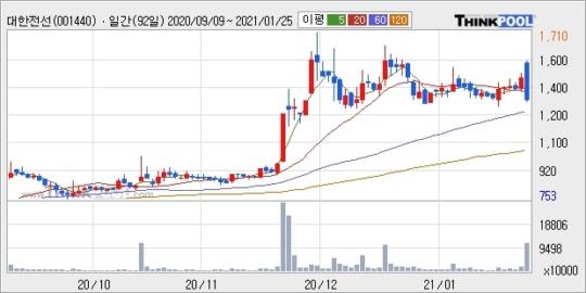 25일 코스피시장에서 전선 및 통신케이블 제조업체인 대한전선(001440)이 하락세를 보이고 있다.