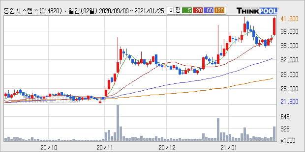 '동원시스템즈' 52주 신고가 경신, 전일 종가 기준 PER 16.8배, PBR 1.5배, 업종대비 저PER