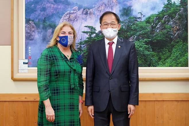 박종호 산림청장은 22일 정부대전청사에서 마리아 카스티요 페르난데즈(Maria CASTILLO FERNANDEZ) 주한 유럽연합(EU) 내정자와 면담을 했다.