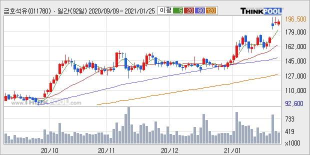 '금호석유' 52주 신고가 경신, 전일 종가 기준 PER 14.8배, PBR 2.0배, 업종대비 저PER