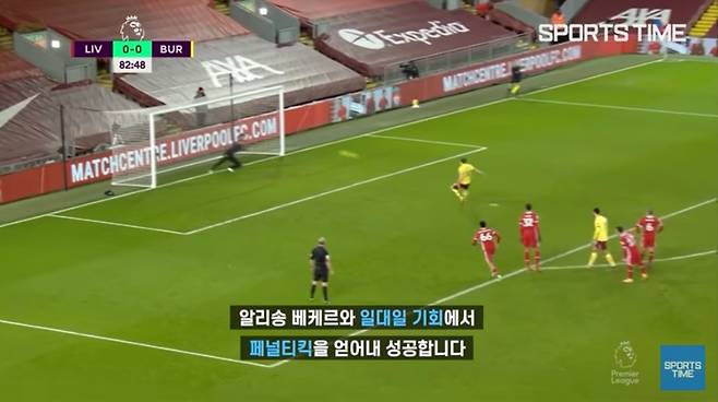 후반도 마찬가지. 후반 5분 트렌트 알렉산더-아놀드 슈팅이 포프 선방에 막혔다. 결국 '버티는' 번리를 리버풀은 무너뜨리지 못했고 후반 38분 애슐리 반스가 파비뉴 몸싸움을 이겨내고 알리송 페케르와 일대일 기회에서 페널티킥을 얻어 냈다.