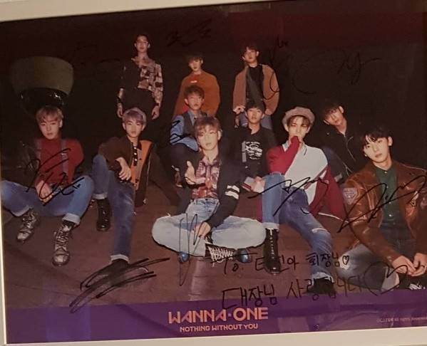 공개된 사진에는 워너원 멤버들의 사인이 담겨 있다. “대장님 사랑합니다”라는 글귀가 시선을 사로잡는다.