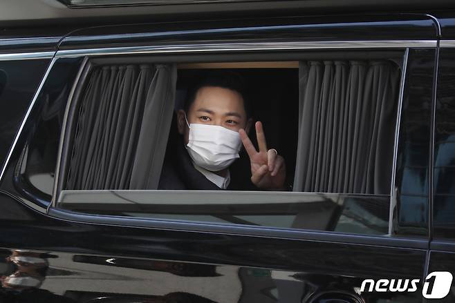 (서울=뉴스1) 권현진 기자 = 에픽하이 미쓰라가 25일 오후 서울 목동 SBS에서 열린 SBS 파워FM '두시탈출 컬투쇼'를 마친 뒤 퇴근을 하며 인사를 하고 있다. 2021.1.25/뉴스1