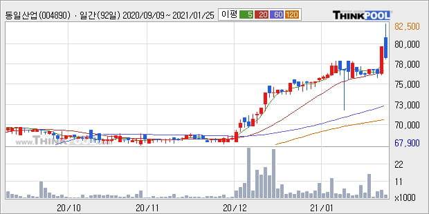 '동일산업' 52주 신고가 경신, 주가 조정 중, 단기·중기 이평선 정배열