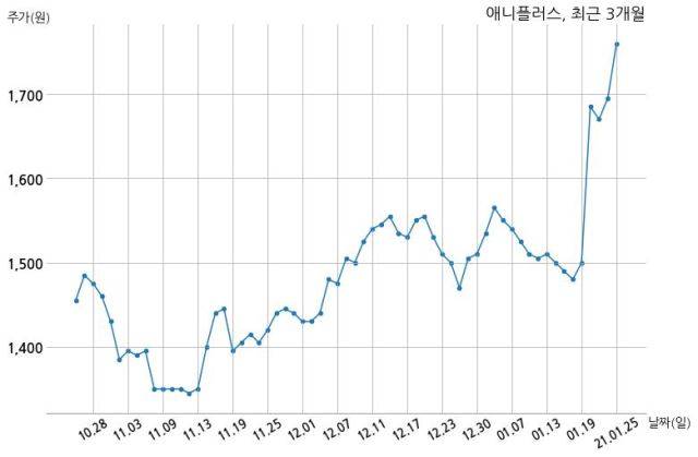 한편, 애니플러스는 장 마감 이후 해당 기업공시를 발표했으며 오늘 종가가 1,760원, 거래량은 1,175,527주로, 직전 거래일 대비 65원(+3.83%) 상승했다.