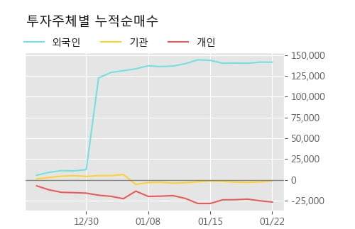 지난 한달을 기준으로 보면 외국인이 13.2만주를 순매수한 반면, 기관은 4,013주를 순매도했고, 개인들도 1.5만주를 순매도한 것으로 집계됐다. 같은 기간 이 종목의 거래비중은 외국인과 개인이 각각 25.3%, 53.9%로 비중이 높다.