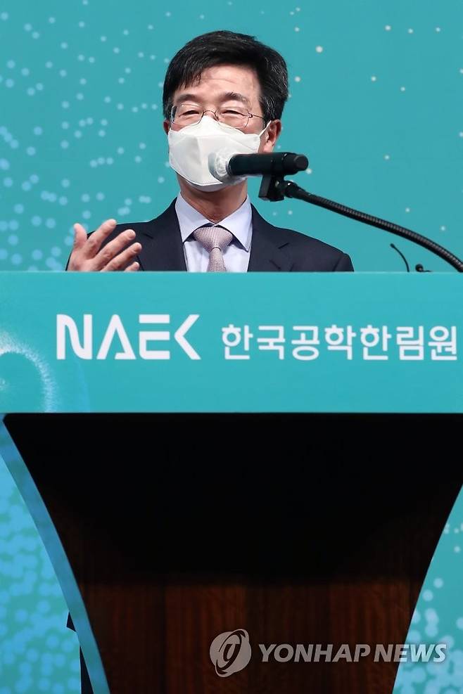 (서울=연합뉴스) 진연수 기자 = 박성욱 SK하이닉스 부회장이 25일 오후 서울 중구 웨스틴조선호텔에서 열린 2021년 한국공학한림원 신년하례식에서 인사말을 하고 있다. 2021.1.25