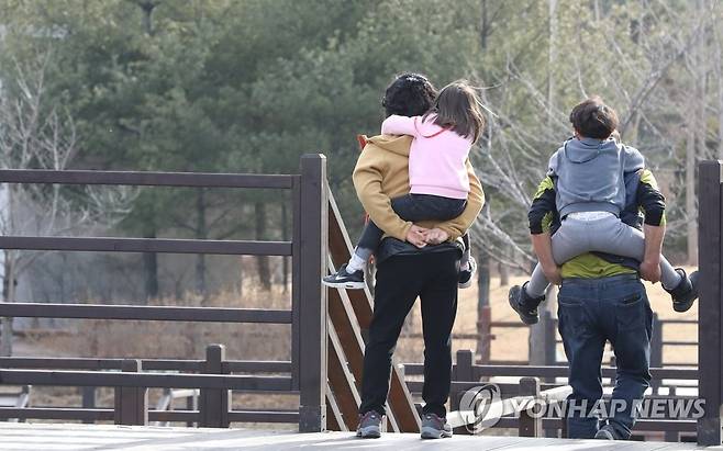 (청주=연합뉴스) 천경환 기자 = 25일 오후 청주시 문암생태공원에서 시민들이 가벼운 옷차림으로 산책하고 있다. 2021.1.25