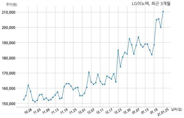 한편, LG이노텍은 장 마감 이후 해당 기업공시를 발표했으며 오늘 종가가 210,500원, 거래량은 454,253주로, 직전 거래일 대비 10,500원(+5.25%) 상승했다.