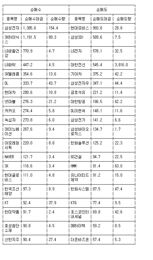 [표] 거래소 외국인 순매수도 상위종목(25일)
