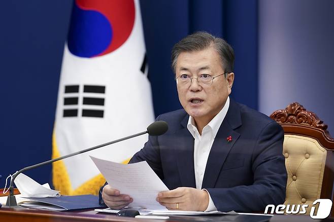 (서울=뉴스1) 이광호 기자 = 문재인 대통령이 25일 오후 청와대에서 열린 보건복지부·식품의약품안전처·질병관리청 2021년 업무보고에 참석해 발언하고 있다. 2021.1.25/뉴스1