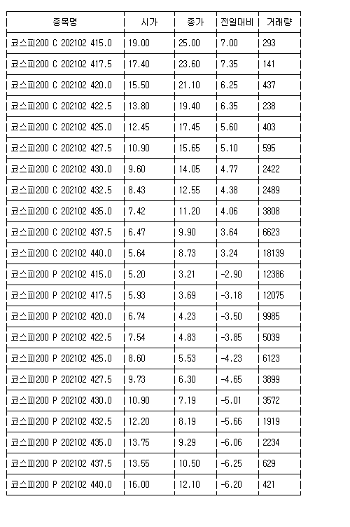 [표] 코스피 지수선물·옵션 시세표(25일)-3