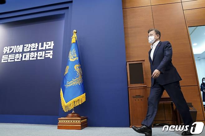 (서울=뉴스1) 이광호 기자 = 문재인 대통령이 25일 오후 청와대에서 열린 보건복지부·식품의약품안전처·질병관리청 2021년 업무보고에 참석하고 있다. 2021.1.25/뉴스1