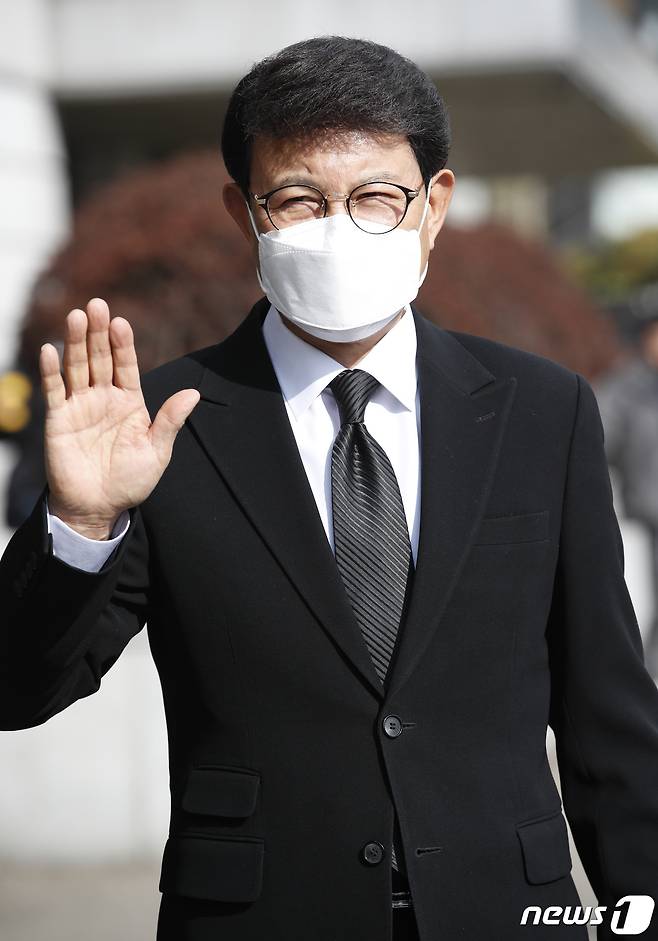 (서울=뉴스1) 권현진 기자 = 가수 설운도가 25일 오후 서울 여의도 KBS 별관에서 열린 ‘가요무대’ 녹화를 위해 들어서며 인사를 하고 있다. 2021.1.25/뉴스1