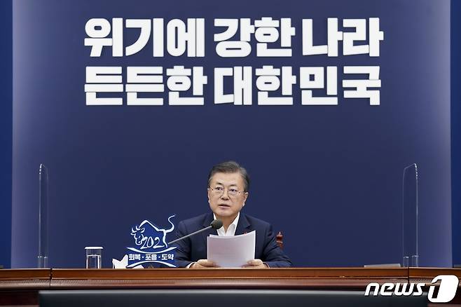 (서울=뉴스1) 이광호 기자 = 문재인 대통령이 25일 오후 청와대에서 열린 보건복지부·식품의약품안전처·질병관리청 2021년 업무보고에 참석해 발언하고 있다. 2021.1.25/뉴스1