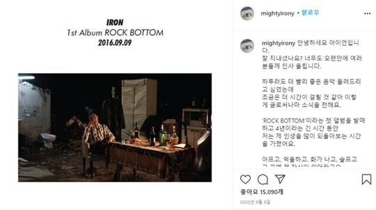 아이언은 지난해 9월 9일 자신의 SNS에 "하루라도 더 빨리 좋은 음악 들려드리고 싶었는데 조금은 더 시간이 걸릴 것 같아 이렇게 글로써나마 소식을 전한다"라고 글을 장문의 글을 게재했다.