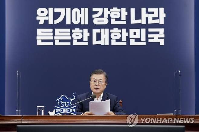 (서울=연합뉴스) 이진욱 기자 = 문재인 대통령이 25일 오후 청와대에서 열린 복지부·식약처·질병청 2021년 업무보고에서 발언하고 있다. 2021.1.25