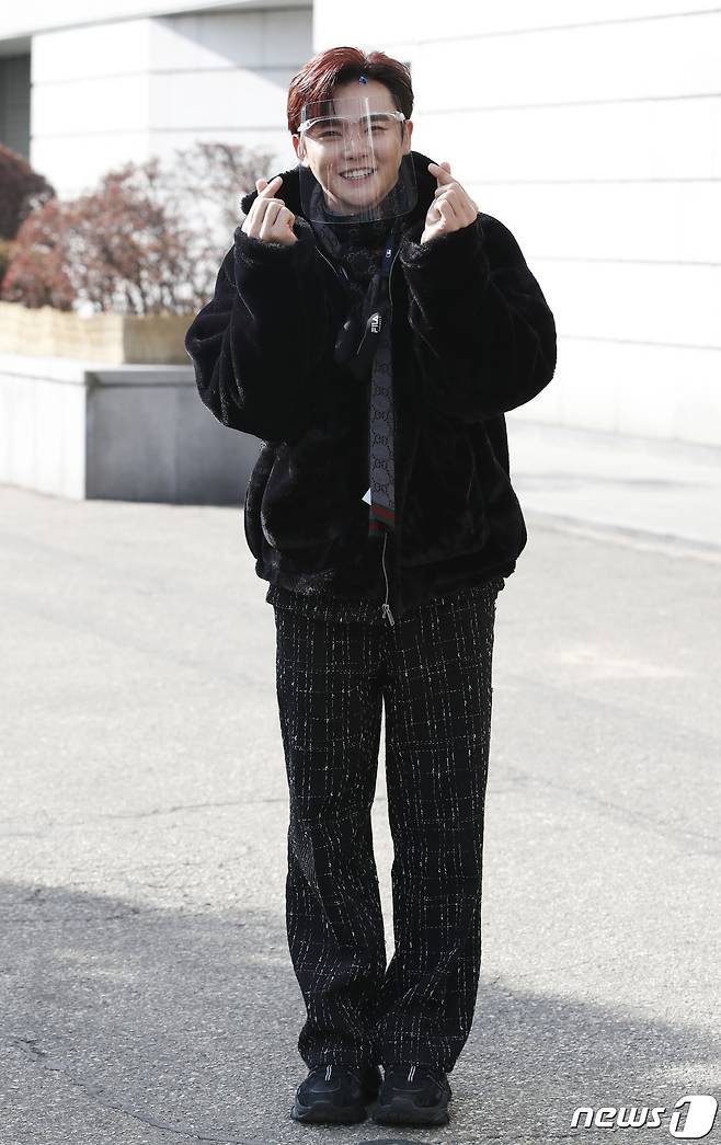(서울=뉴스1) 권현진 기자 = 가수 이도진이 25일 오후 서울 여의도 KBS 별관에서 열린 ‘가요무대’ 녹화를 위해 들어서며 인사를 하고 있다. 2021.1.25/뉴스1