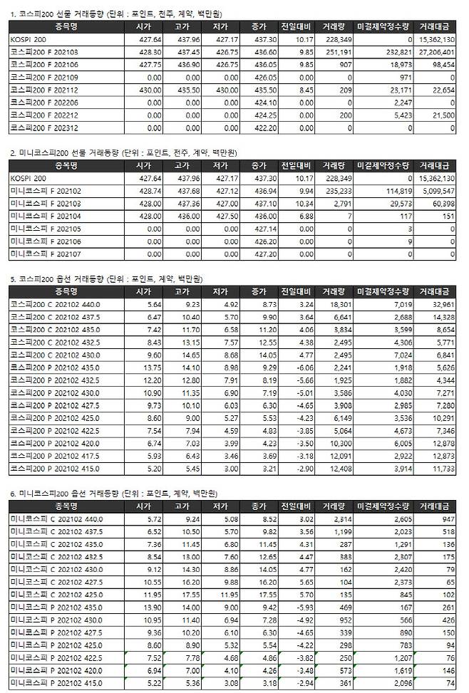 [표]거래소 주가지수선물·옵션시세표(1/25)