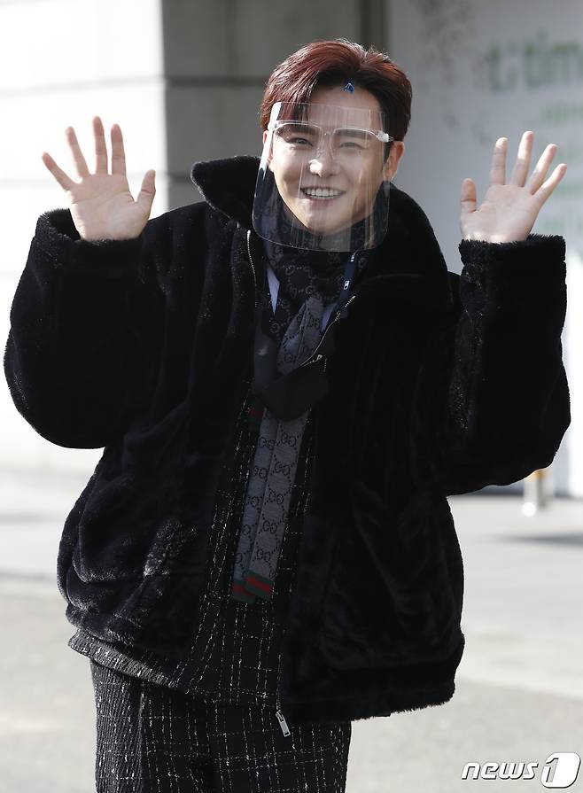 (서울=뉴스1) 권현진 기자 = 가수 이도진이 25일 오후 서울 여의도 KBS 별관에서 열린 ‘가요무대’ 녹화를 위해 들어서며 인사를 하고 있다. 2021.1.25/뉴스1