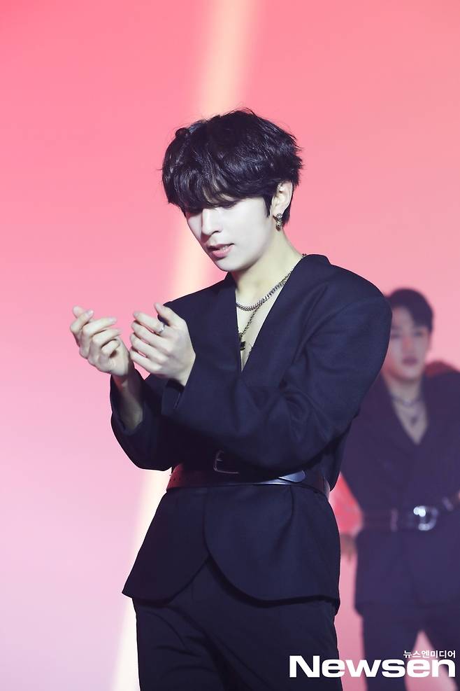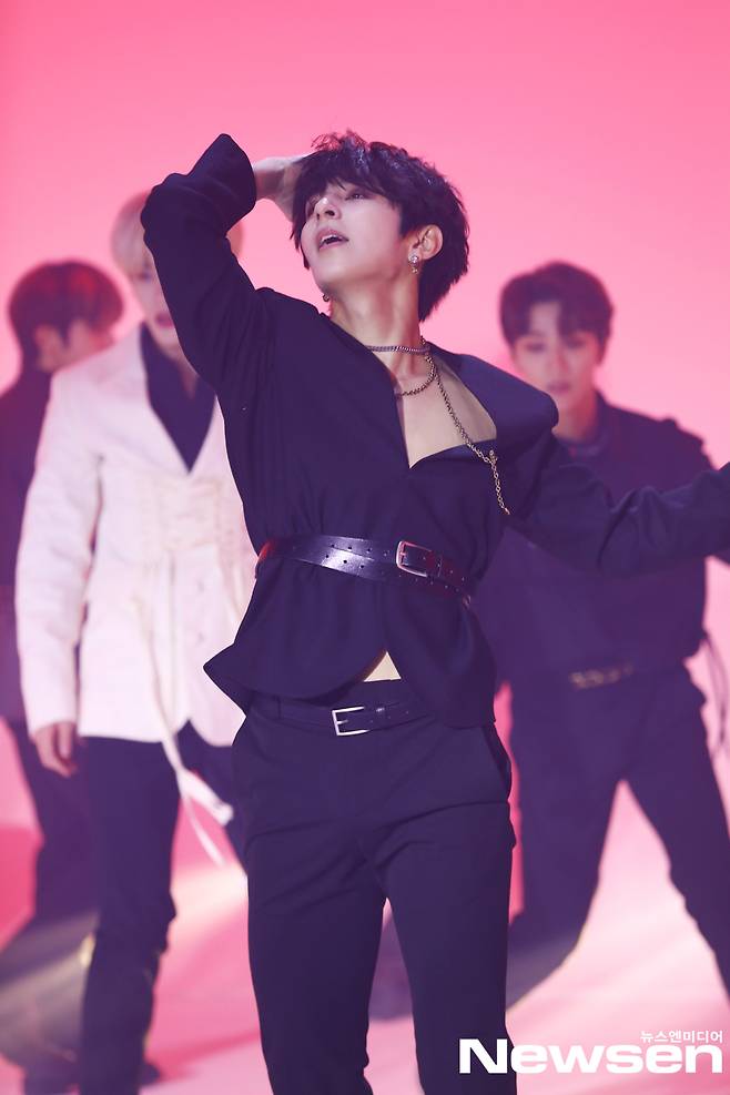 이날 골든차일드(이장준, 김동현, 최보민, 봉재현, 김지범, 홍주찬, TAG, 배승민, Y, 이대열)가 멋진 쇼케이스 무대를 선보이고 있다.