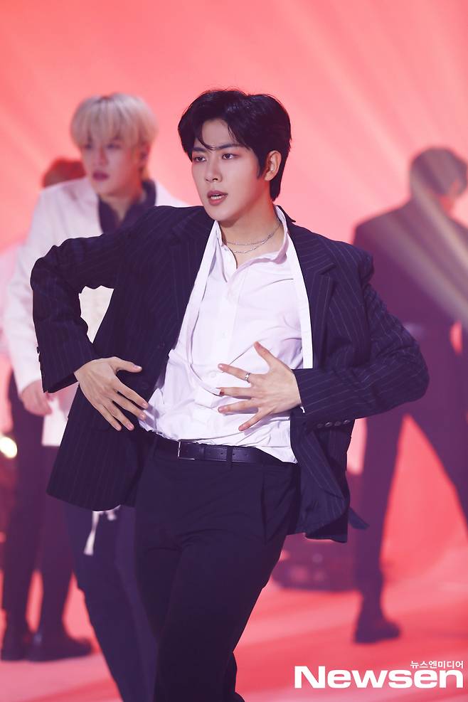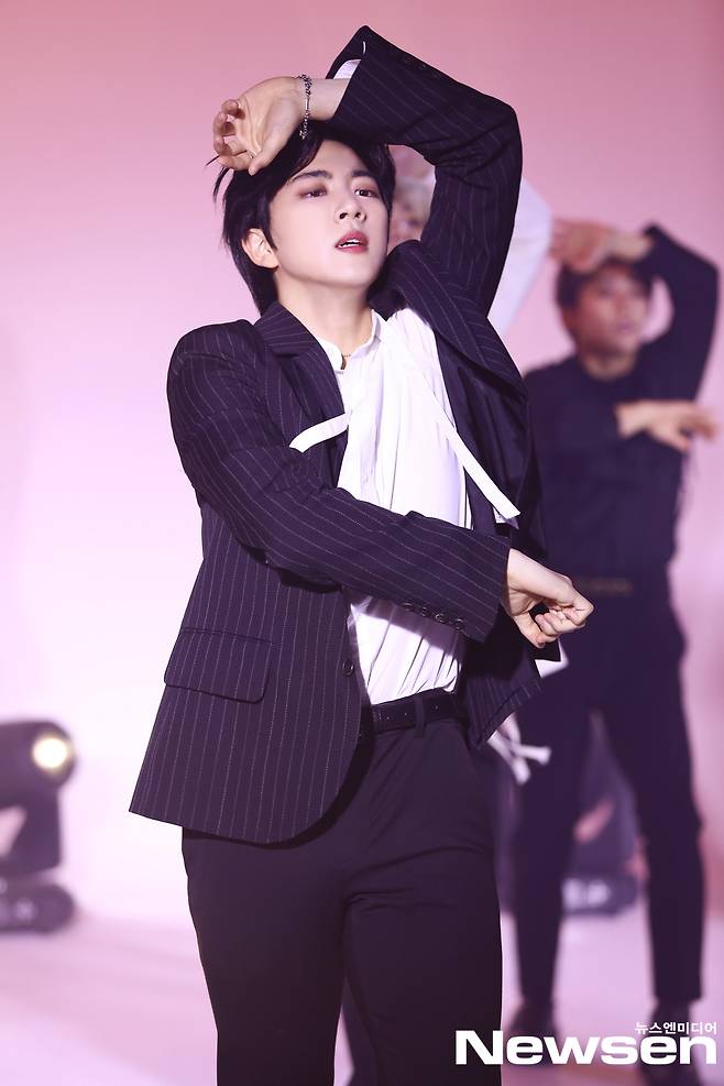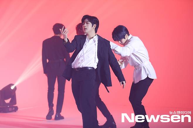 이날 골든차일드(이장준, 김동현, 최보민, 봉재현, 김지범, 홍주찬, TAG, 배승민, Y, 이대열)가 멋진 쇼케이스 무대를 선보이고 있다.