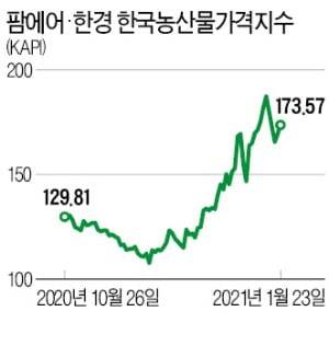 현재의 농산물 물가 급등은 예고된 일이다. 전국의 농촌은 지난해 봄부터 겨울까지 이어진 이상기후로 파종과 수확 시기를 놓쳤다. 코로나19로 가정 내 식재료 소비가 늘고 외식과 단체급식 등의 수요는 줄면서 소비 구조가 바뀌었다. 팜어에한경은 지난해 4월부터 AI 예측 시스템을 가동하면서 지난해 말의 품목별 가격 급등, 올 상반기 가격 전망까지 정확하게 내놓으면서 농산물 가격 안정의 근본적 시스템을 마련할 수 있다는 점을 검증했다.