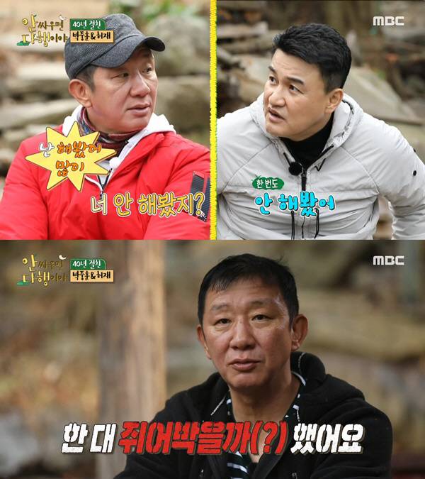 '안 싸우면 다행이야'는 절친 두 남자가 홀로 사는 자연인을 찾아가 야생에서의 자급자족 라이프를 함께하는 내용을 담은 프로그램.